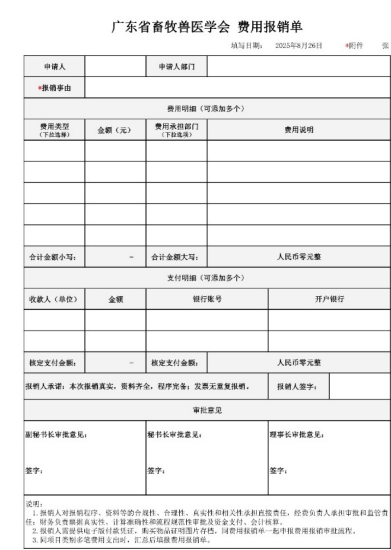 為規(guī)范廣東省畜牧獸醫(yī)學會(以下簡稱“學會”)的財務管理工作中的報銷和審批行為,明確學會財務支出的內(nèi)部流程及審批權(quán)限,規(guī)范財務管理流程,完善健全學會財務內(nèi)控制度,確保健康持續(xù)發(fā)展,制訂本制度。